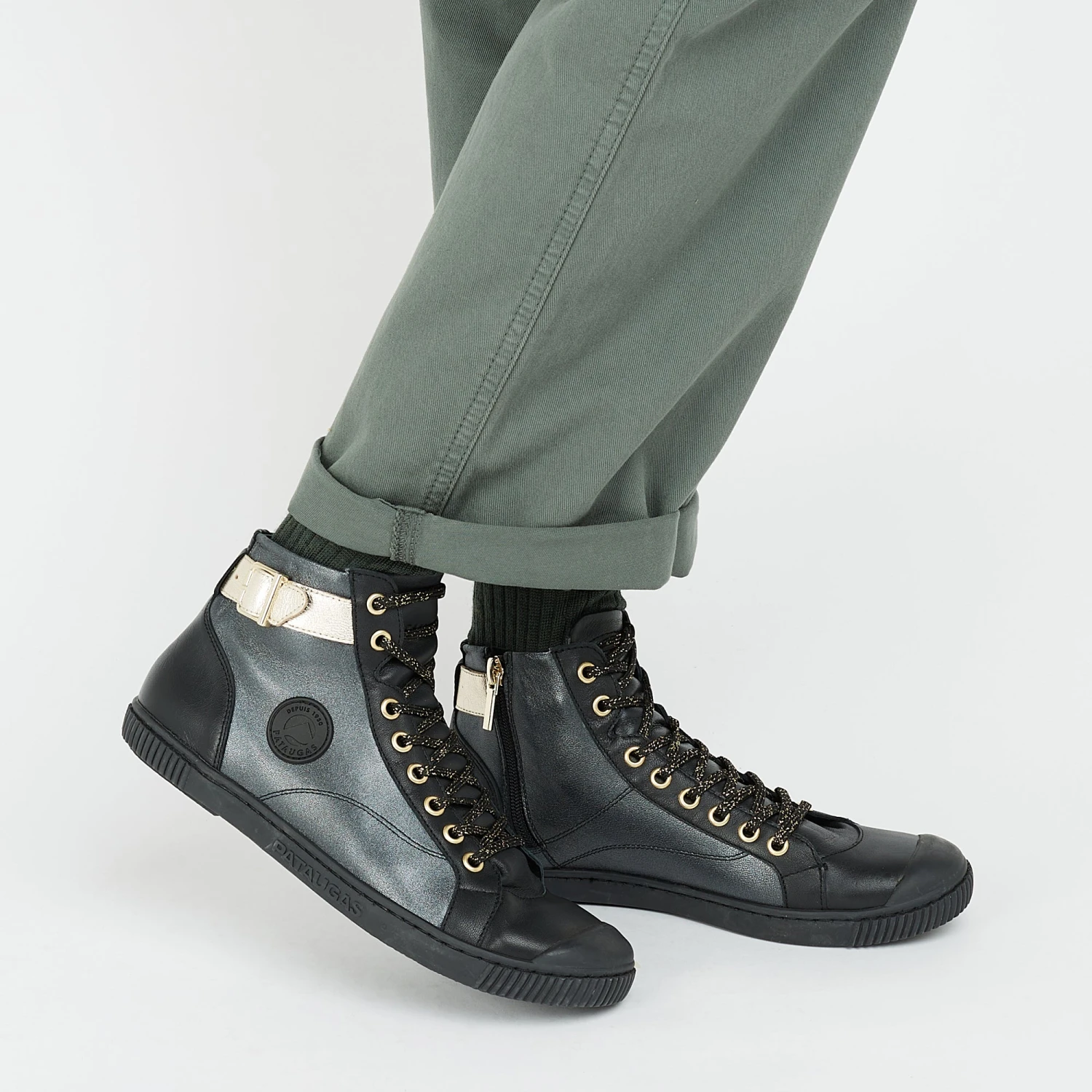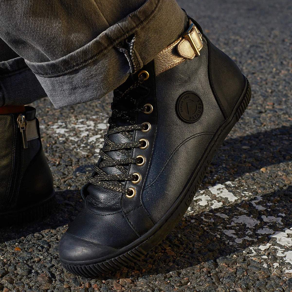- Basket montante en cuir noir doré pour un look élégant
