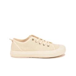Une basket basse femme alliant style rétro et innovation durable, parfaite pour vos aventures quotidiennes.