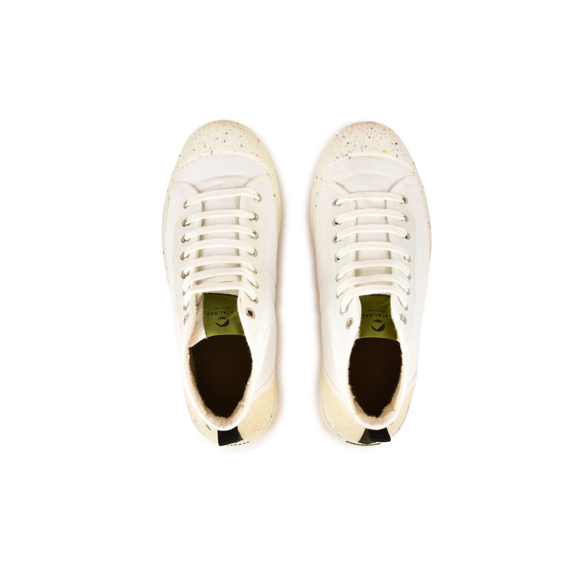 - Matériaux Éco-Responsables : Tige en coton recyclé (80%) et « cuir » d’ananas (20%).